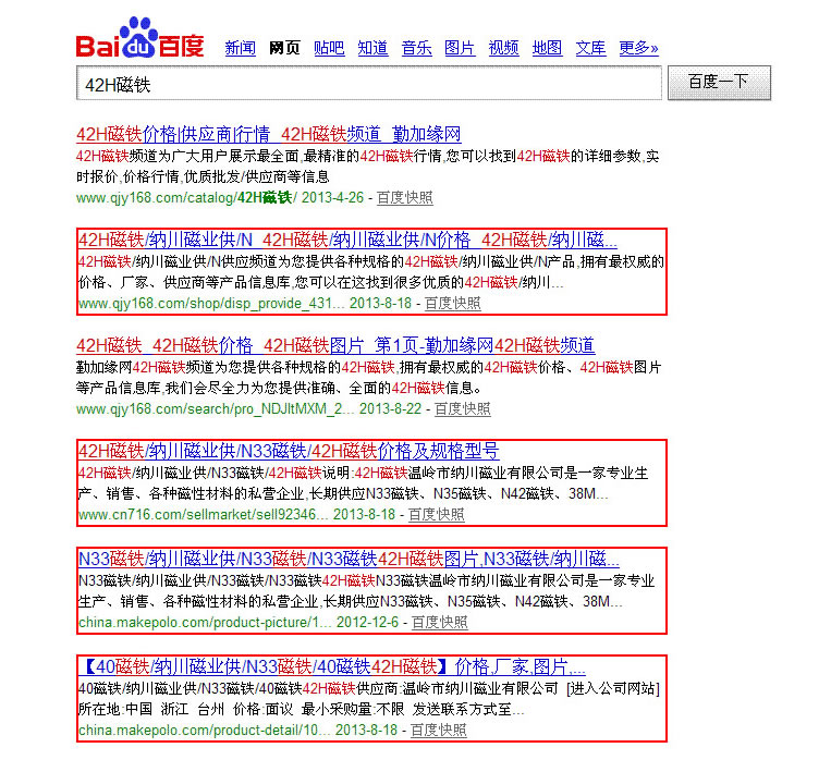 答:一般來說,一個區(qū)域內同一個行業(yè)不超過5家,但客戶有可能在同一個行業(yè),產品也有差異化,針對的客戶群體也不一樣,所以沒有一個明確的規(guī)定。另外行業(yè)的劃分是很細的,按照目前的國際行業(yè)劃分標準來說,可以分成40個大類,幾百個小類,所以基本不用擔心跟你碰到完全一樣產品的其他客戶。效果這塊我們保證 80%的產品信息在各大搜索引擎首頁。